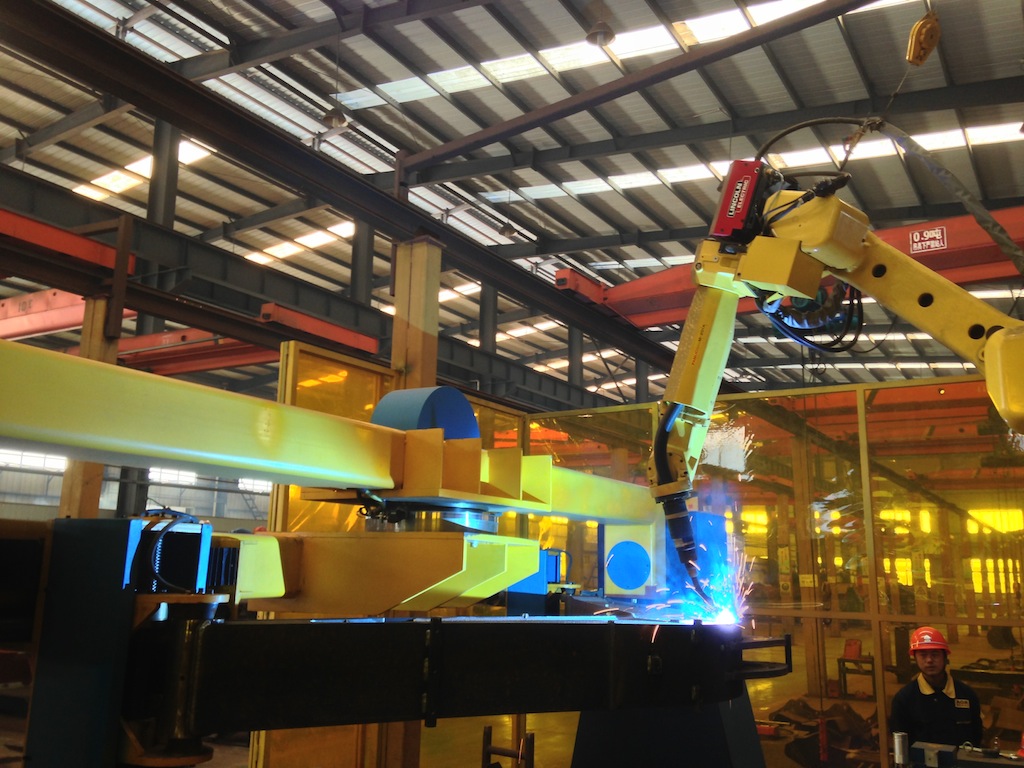 挖掘機(jī)動(dòng)臂焊接雙機(jī)器人工作站,是專為挖掘機(jī)動(dòng)臂設(shè)計(jì)的高度集成化自動(dòng)化焊接解決方案。該工作站采用雙機(jī)器人同時(shí)作業(yè),結(jié)合先進(jìn)的傳感技術(shù)和靈活的變位機(jī)設(shè)計(jì),顯著提高了焊接質(zhì)量和生產(chǎn)效率。