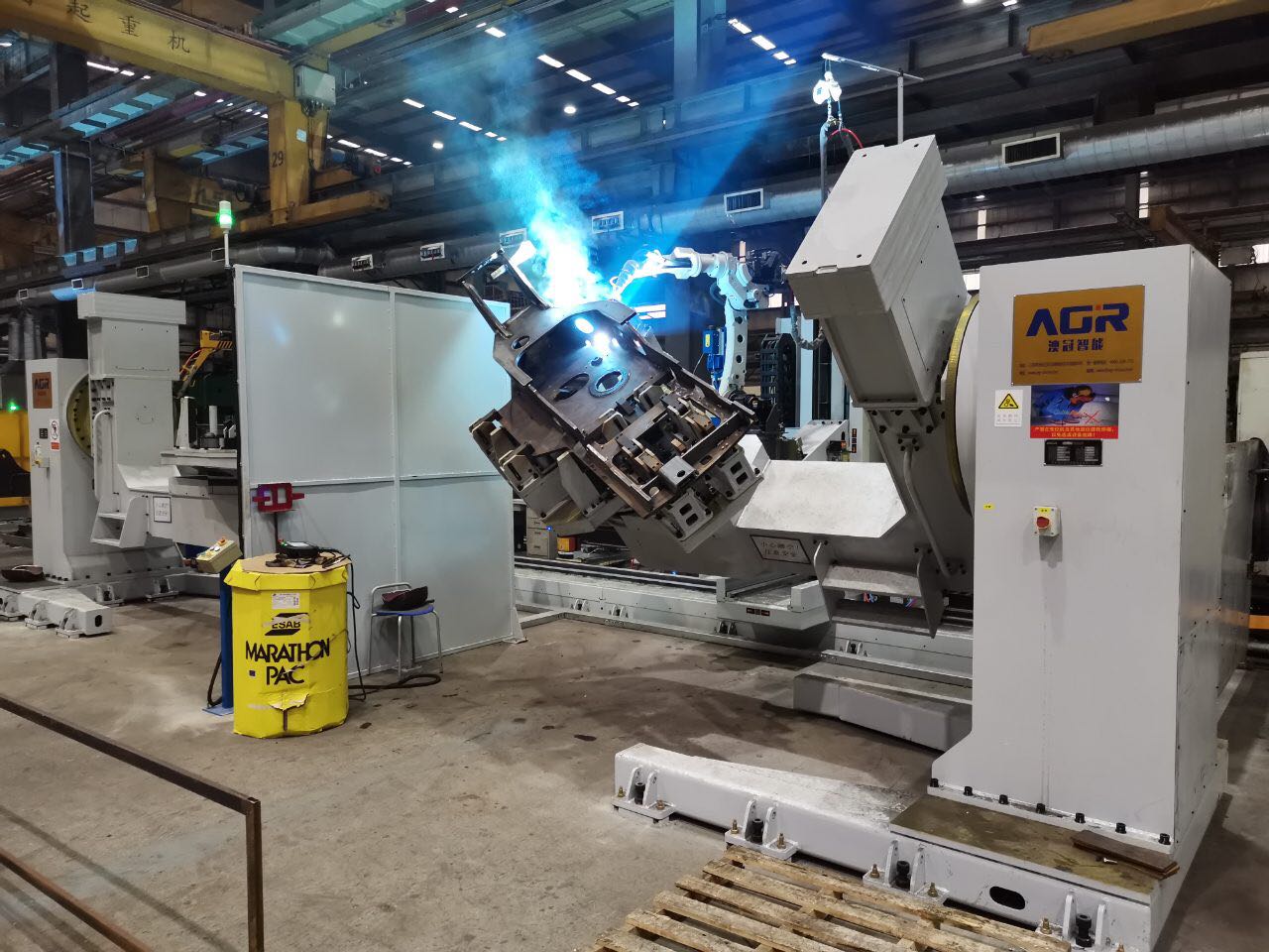 兩臺(tái)變位機(jī)對(duì)面布置,雙工位系統(tǒng)構(gòu)成節(jié)省上下工件時(shí)間,縮短生產(chǎn)節(jié)拍。