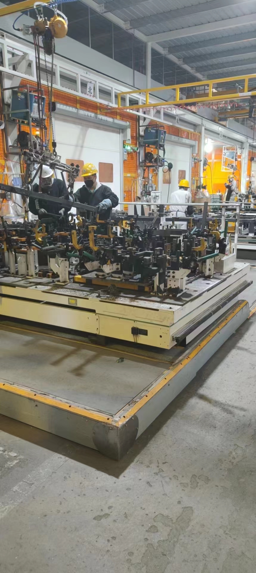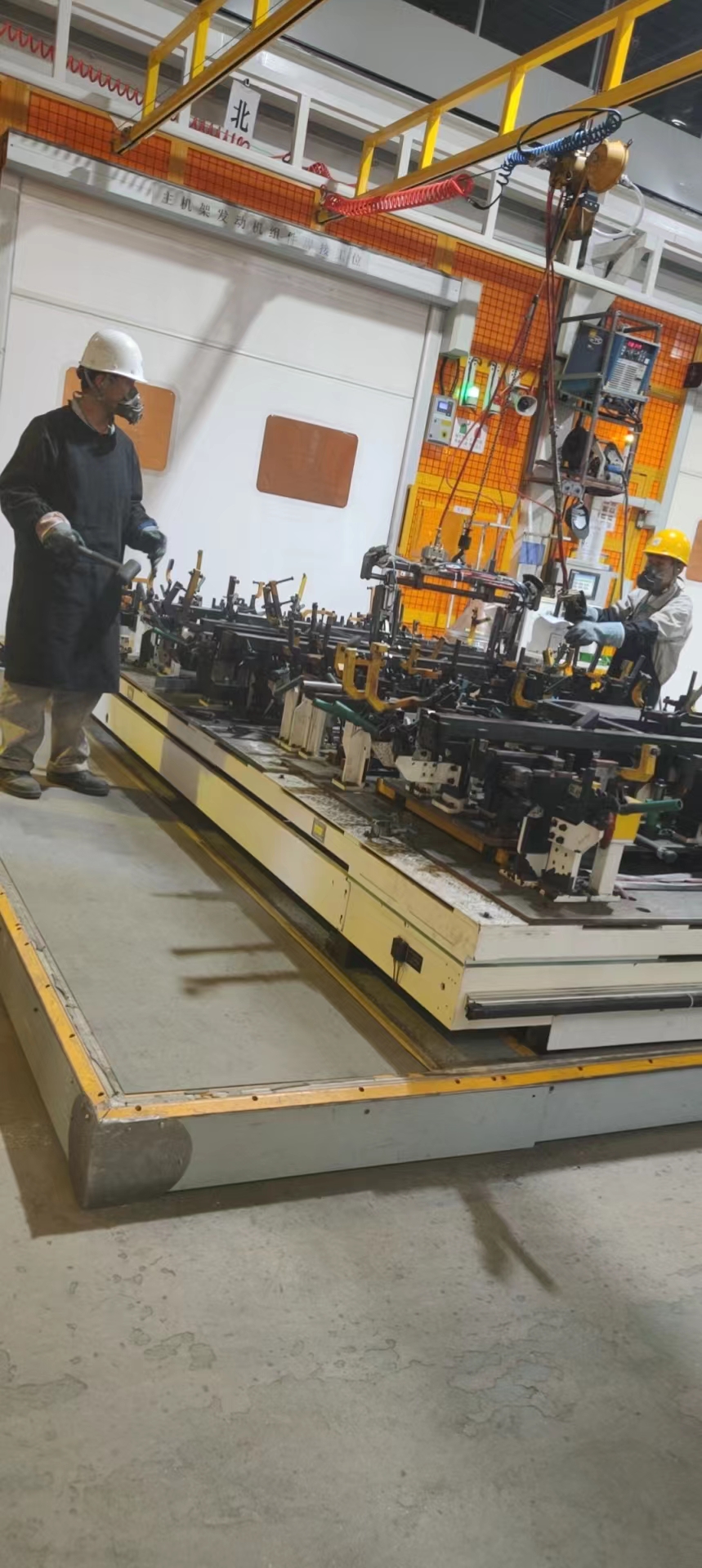 這次工作站改造的原因是現(xiàn)狀主機(jī)架的生產(chǎn)是在一臺(tái)治具上完成所有的焊接,治具定位多、結(jié)構(gòu)復(fù)雜,造成機(jī)器人焊接干涉區(qū)域多,自動(dòng)化率低。改造后將主機(jī)架分為四個(gè)組件分別焊接后再進(jìn)行拼接,治具結(jié)構(gòu)簡(jiǎn)單,可兼用機(jī)型多,自動(dòng)化率提高。